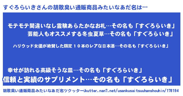 | 恥ずかしいあだ名 | 『プリティーすぐろらいき』『すぐっちょ』 |