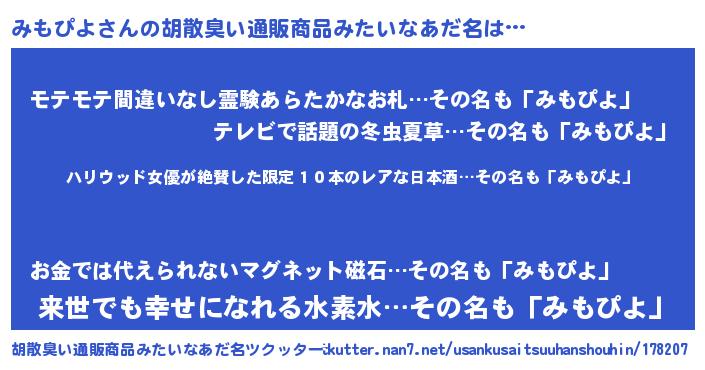 | 意味不明あだ名 | 『住所不定無職みもぴよ(43歳)』 |