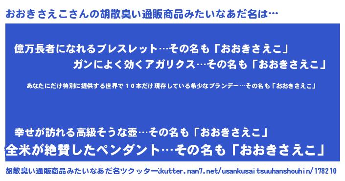 | 意味不明あだ名 | 『住所不定無職おおきさえこ(74歳)』 |