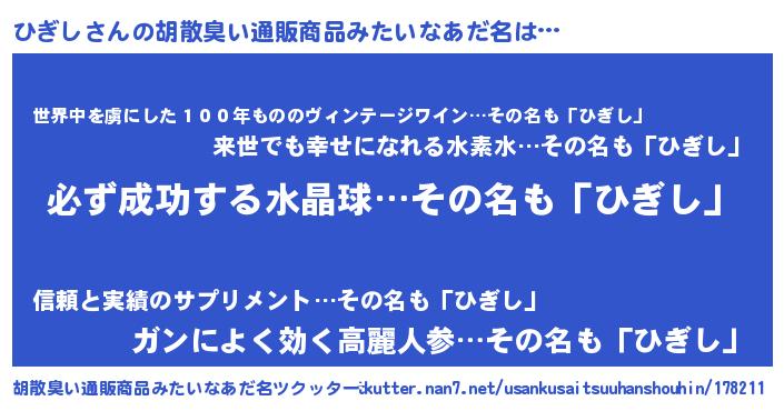 | ヘコむあだ名 | 『ひぎもー』『ひぎし(震え声)』 |