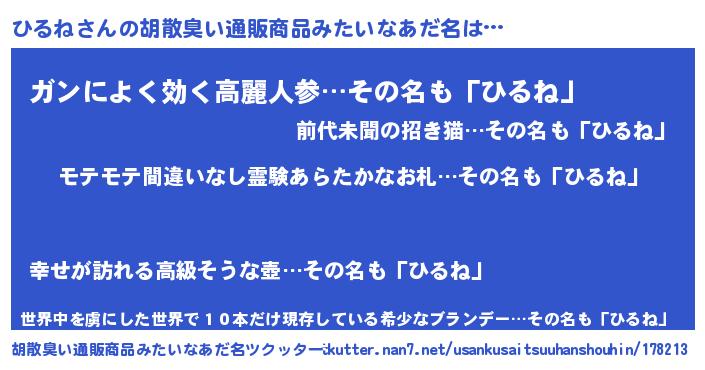 | ヘコむあだ名 | 『ひるっふぃ~』『ひるね(小並感)』 |