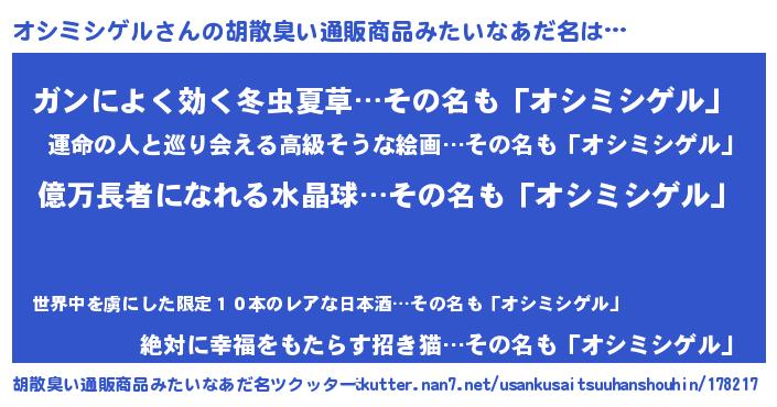 | 欧米人風あだ名 | 『マイケルオシミシゲル』 |