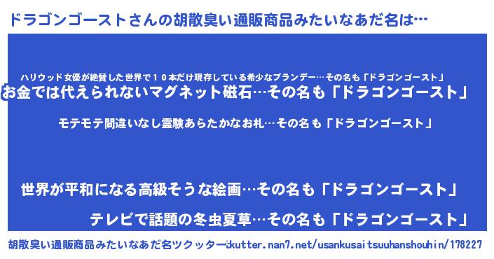 | 男性向けラノベタイトル風あだ名 | 『転生したらドラゴンゴーストだった件』 |