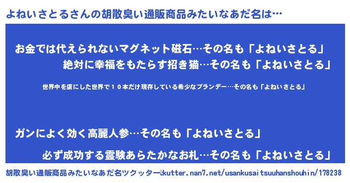 | ヘコむあだ名 | 『よねもー』『よねいさとる(笑)』 |