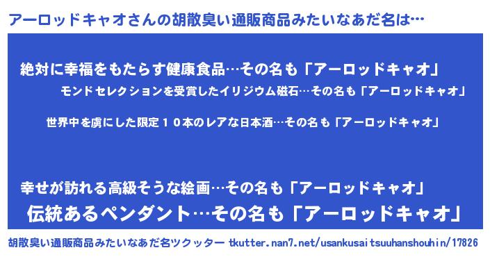 | 意味不明あだ名 | 『住所不定無職アーロッドキャオ(47歳)』 |