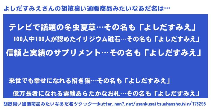 | ポケモン風あだ名 | 『ヨシゴンZ』『ヒヨシダスミエ』 |