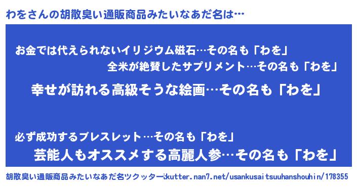 | ヒーロー風カッコイイあだ名 | 『ウルトラわをマン』『友情の使者わを』 |