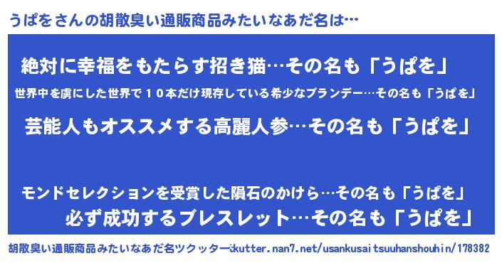 | ヘコむあだ名 | 『うぱを(笑)』『うぱにー』『豆乳』 |