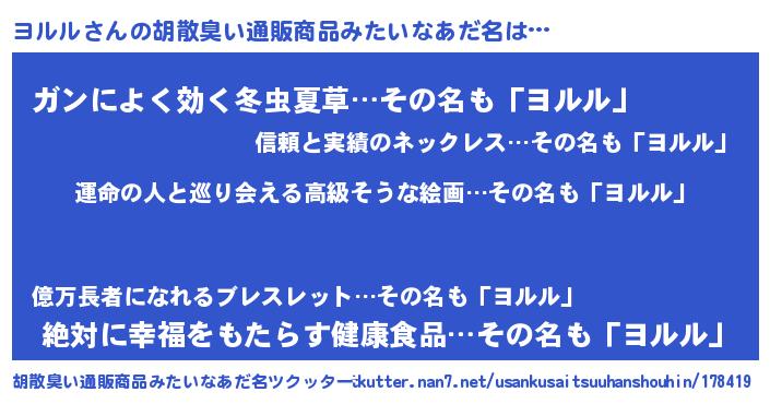 | 意味不明あだ名 | 『ヨルルフォーエバー』『自称ヨルル』 |