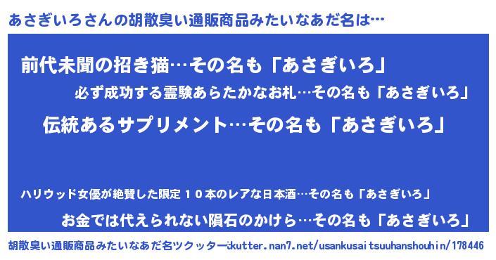 | 意味不明あだ名 | 『とにかく怪しいあさぎいろ』 |