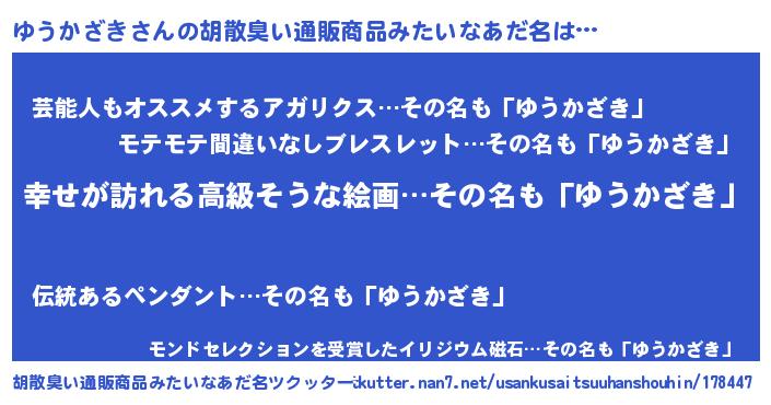 | 肩書あだ名 | 『ゆうかざき総理大臣』『ゆうかざき閣下』 |