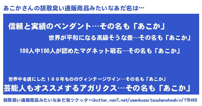 | ヘコむあだ名 | 『あこを』『つくし』『あこにゅー』 |