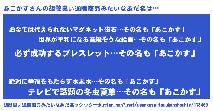 | 肩書あだ名 | 『あこかす社長』『あこかす助教授』 |