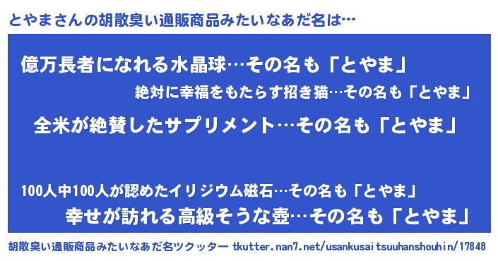 | 恥ずかしいあだ名 | 『トヤリンリン』『プリティーとやま』 |