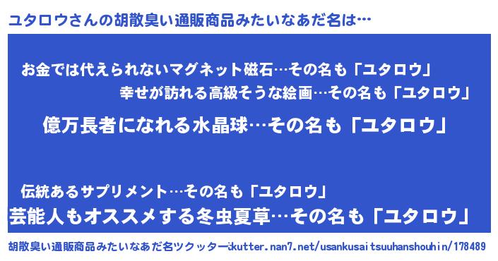 | ヘコむあだ名 | 『ユタにゅー』『牛乳』『ユタっぺ』 |