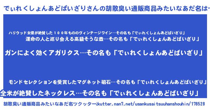 | 意味不明あだ名 | 『自称でぃれくしょんあどばいざり』 |