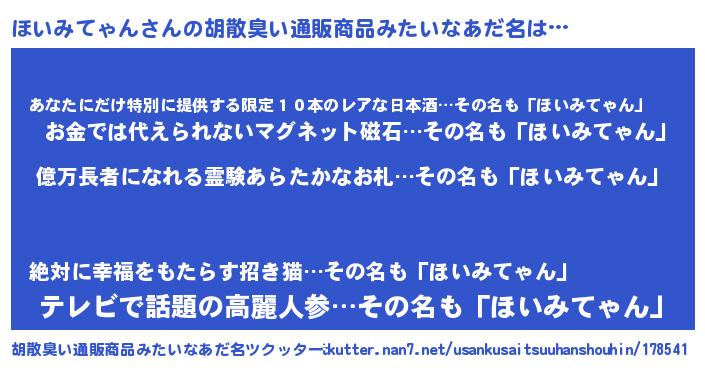 | 肩書あだ名 | 『ほいみてゃん御曹司』 |