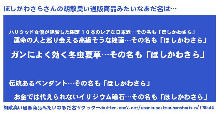| 意味不明あだ名 | 『自称ほしかわさら』 |