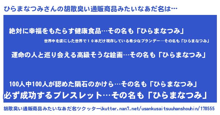 | 意味不明あだ名 | 『ひらまなつみフォーエバー』 |