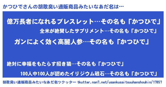 | ヘコむあだ名 | 『かつふぇ~』『かつを』『酢こんぶ』 |