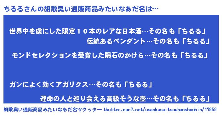 | ヒーロー風カッコイイあだ名 | 『天空の使者ちるる』『仮面チルダー』 |