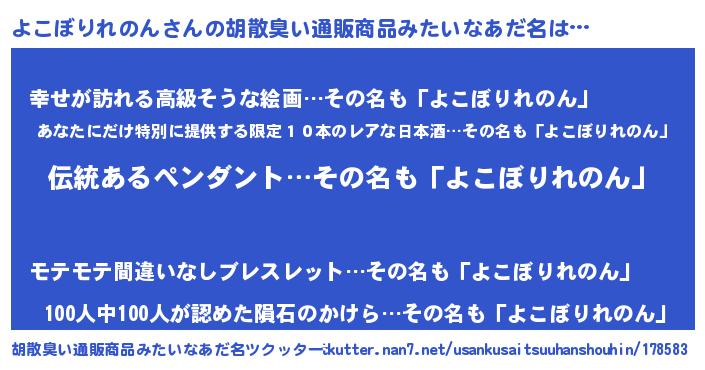 | 女子向けラノベタイトル風あだ名 | 『よこぼりれのんの卵を拾いまして』 |