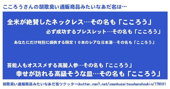 こころうさんの胡散臭い通販商品みたいなあだ名をツクッター!
