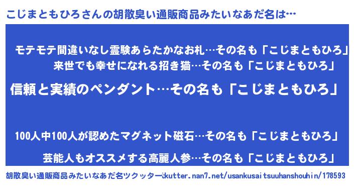 | 意味不明あだ名 | 『とにかく怪しいこじまともひろ』 |