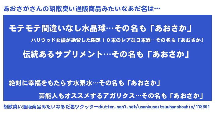 | 恥ずかしいあだ名 | 『アオリンリン』『プリティーあおさか』 |