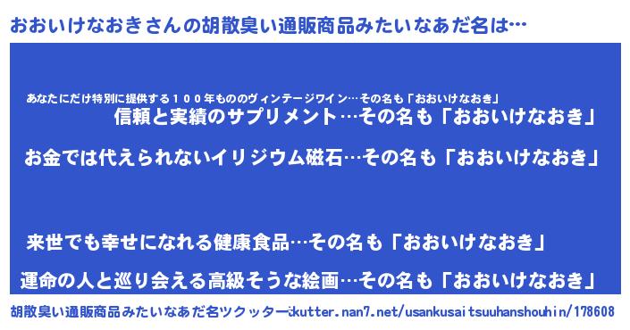 | 欧米人風あだ名 | 『ダニエルおおいけなおき』 |