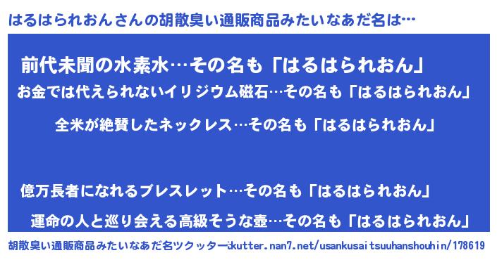 | 欧米人風あだ名 | 『ウサインはるはられおん』 |