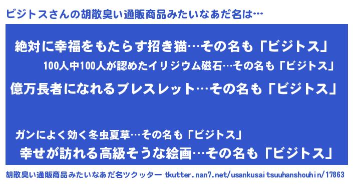 | ヘコむあだ名 | 『ビジふぇ~』『ビジトス(小並感)』 |