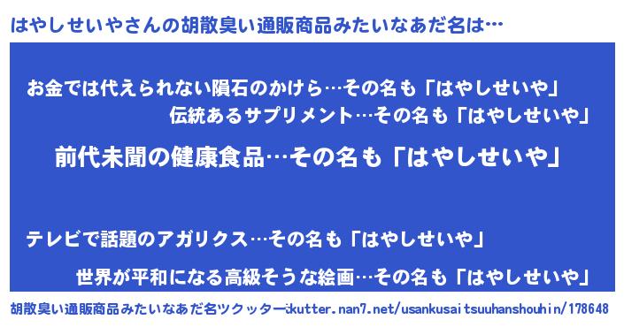 | 欧米人風あだ名 | 『ダルビッシュはやしせいや』 |