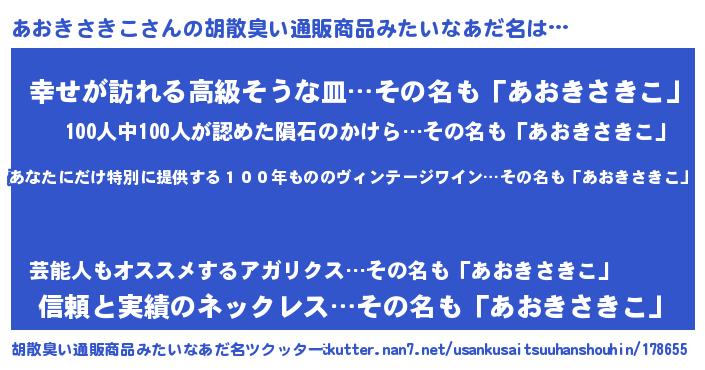 | 欧米人風あだ名 | 『ダレノガレあおきさきこ』 |