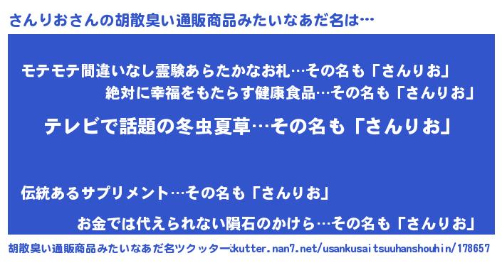 | 意味不明あだ名 | 『自称さんりお』『ペロリンさんりお』 |