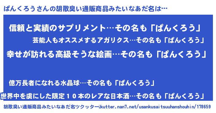| 男性向けラノベタイトル風あだ名 | 『やはりぱんくろうの青春ラブコメはまちがっている 』 |