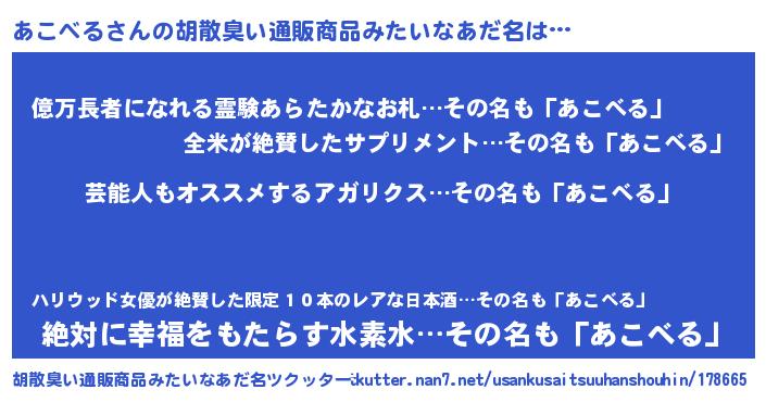 | 意味不明あだ名 | 『自称あこべる』『ペロリンあこべる』 |