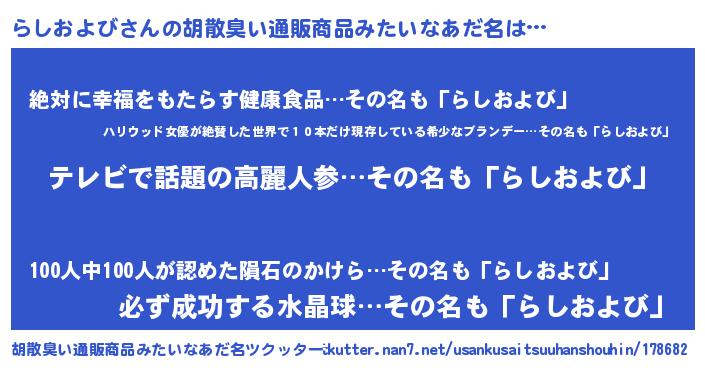 | ヘコむあだ名 | 『らしおよび(笑)』『らしにゅー』 |