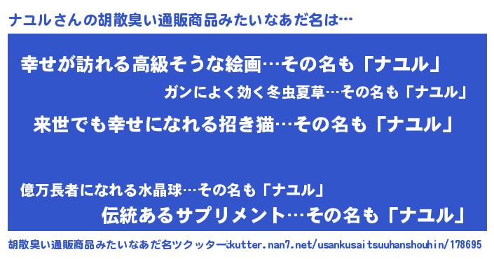 | 意味不明あだ名 | 『永久保存ナユル』『ナユルフォーエバー』 |