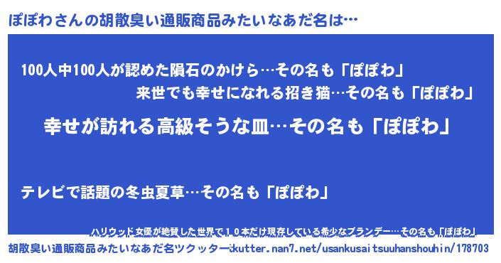 | 男性向けラノベタイトル風あだ名 | 『ポポワスレイヤー』 |