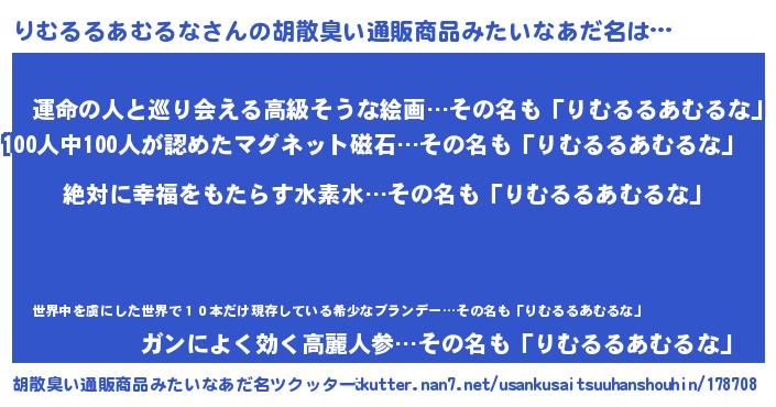 | ヘコむあだ名 | 『りむるるあむるな(遠い目)』『レバニラ』 |