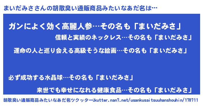 | 女子向けラノベタイトル風あだ名 | 『まいだみさの婚約者』『闇のまいだみさ』 |