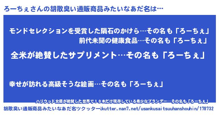 | 意味不明あだ名 | 『とにかく怪しいろーちぇ』 |