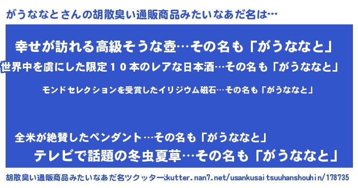 | 肩書あだ名 | 『がうななと学校長』『がうななと大統領』 |
