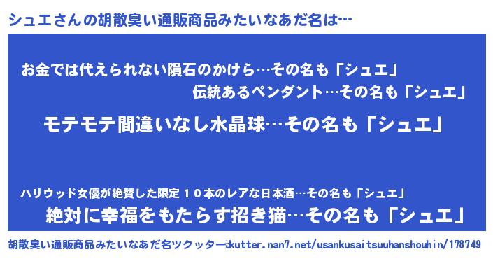 | ヘコむあだ名 | 『シュふぇ~』『シュエ(震え声)』 |