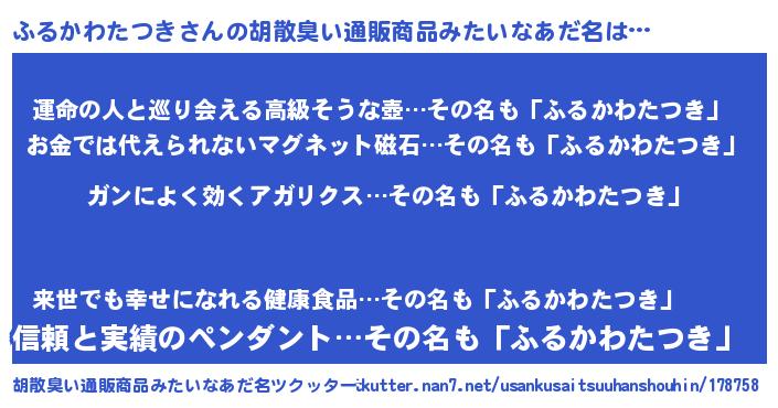 | 意味不明あだ名 | 『自称ふるかわたつき』 |