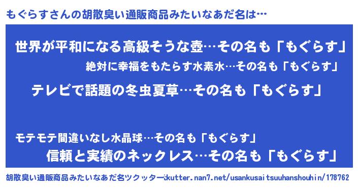 | 意味不明あだ名 | 『自称もぐらす』『もぐらすフォーエバー』 |