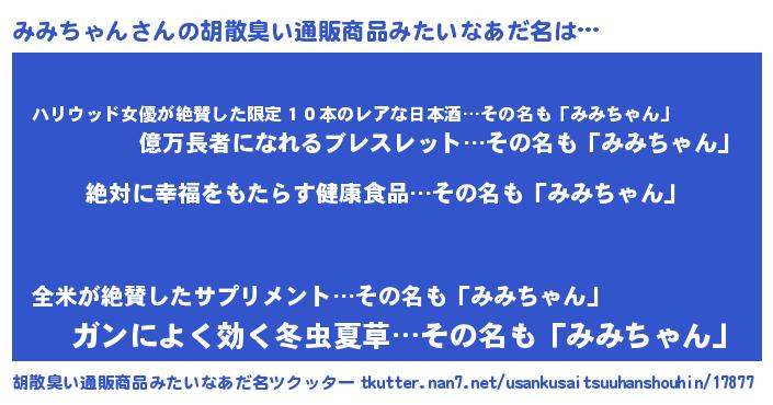 | 意味不明あだ名 | 『永久保存みみちゃん』『自称みみちゃん』 |