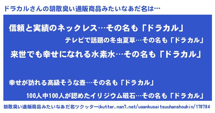 | ヘコむあだ名 | 『ドラカル(震え声)』『ドラぷりん』 |