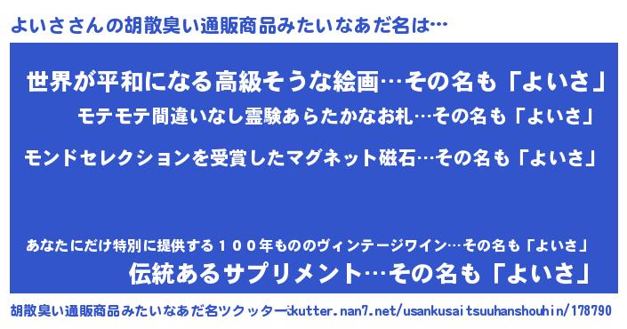 | ヒーロー風カッコイイあだ名 | 『慈愛の使者よいさ』『魔戒騎士ヨイ』 |